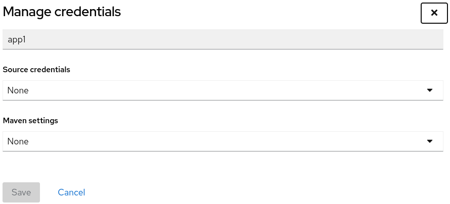 - Select the credential from the Source credentials or Maven setting drop-down list.