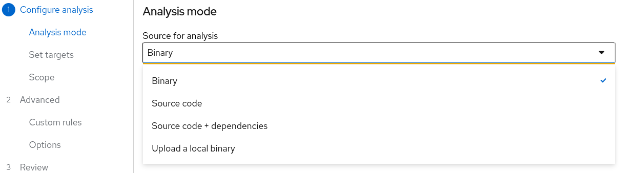 - Click a radio button to select one of the following scope options to narrow down and focus the analysis.
