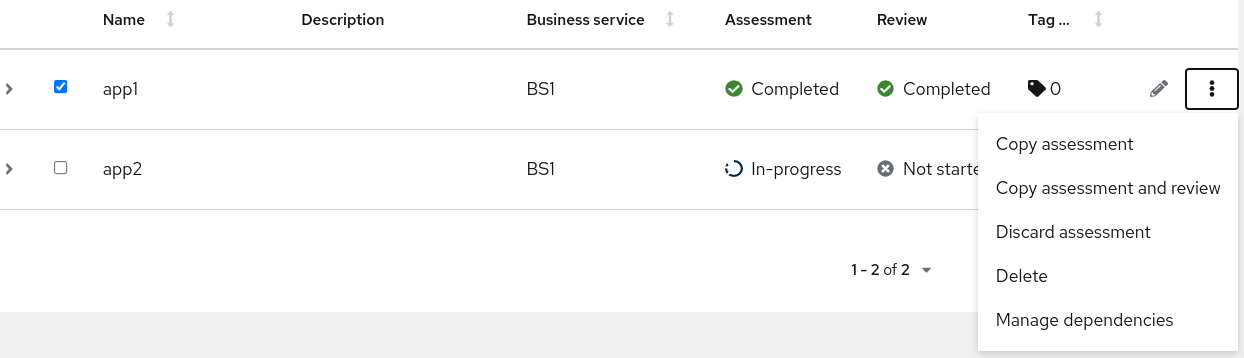 - Click the checkbox to the left of the application being assessed.